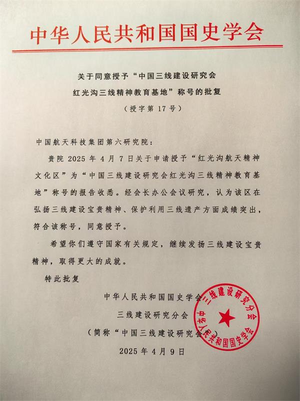 我会授予红光沟航天精神文化区以“红光沟三线精神教育基地”称号